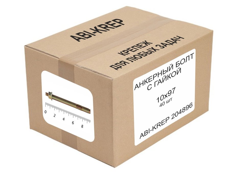 В корзину Купить в 1 клик Анкерный болт с гайкой 10х 40 ( 50шт) "ABI-KREP 211255" 1,144кг резьба М8, вес 1шт 22,868г
