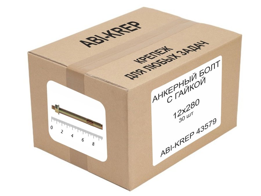 В корзину Купить в 1 клик Анкерный болт с гайкой 12х280 ( 30шт) "ABI-KREP 43579" 5,913кг резьба М10, вес 1шт 197,084г