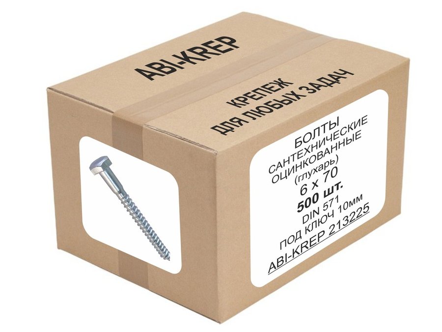 Болты сантехнические оцинкованные 10х 70 DIN 571 ( 25шт) "ABI-KREP 213268" 0,944кг, Глухарь, 37,76гр