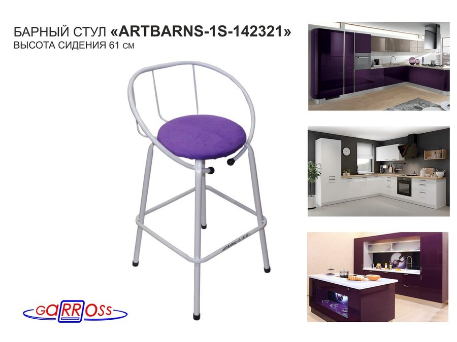 В корзину Купить в 1 клик "ARTBARNS 1S-142321" cтул барный, табурет, спинка, высота 0,61метра, 22мм,серые ножки/фиолет. ткань