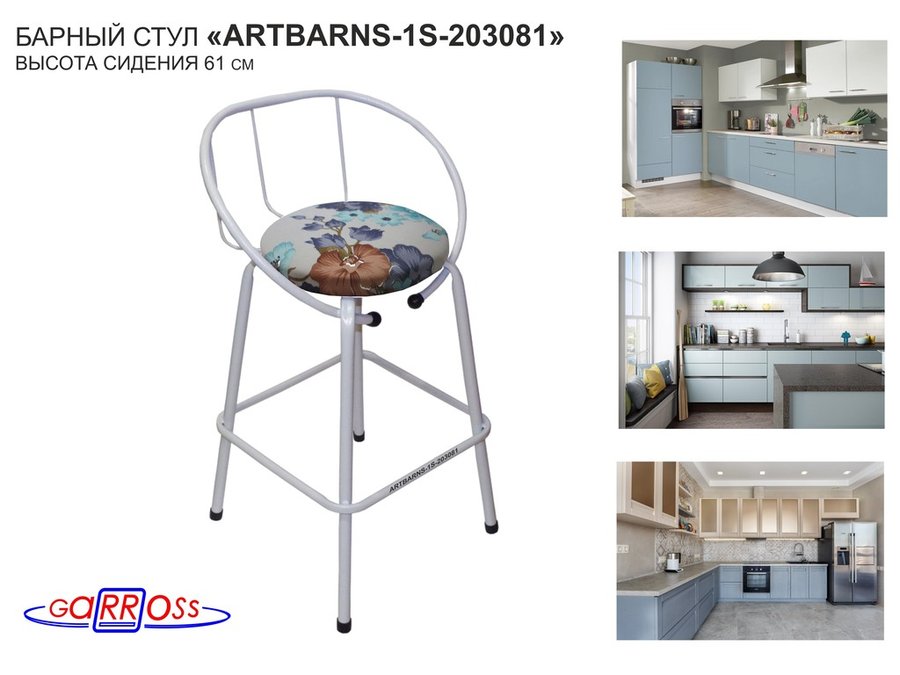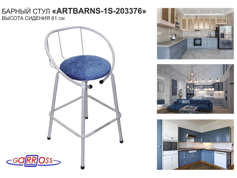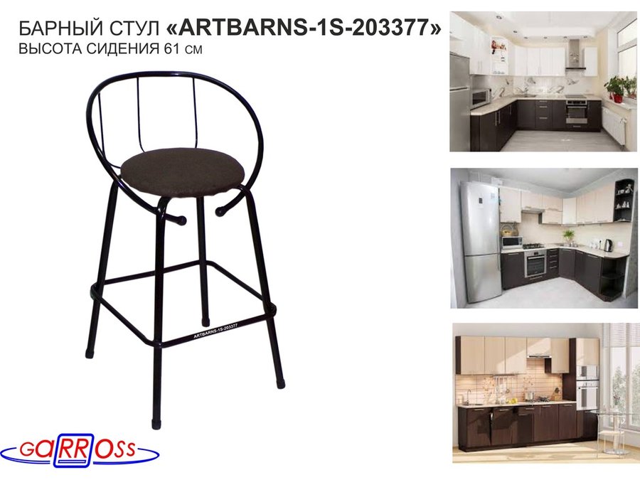 В корзину Купить в 1 клик "ARTBARNS 1S-203377" cтул барный, табурет, спинка, высота 0,61м, 22мм,черные ножки/Вольт 12, ткань