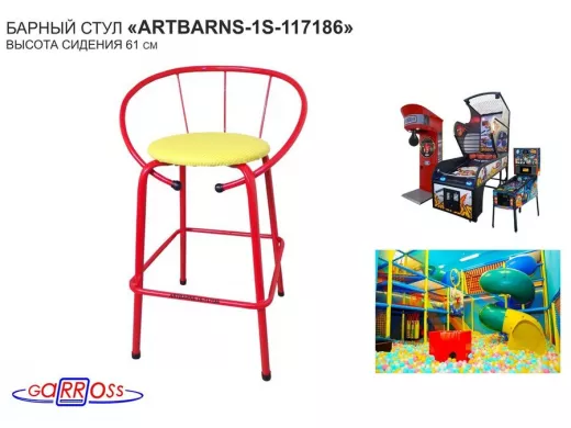 В корзину Купить в 1 клик "ARTBARNS 1S-117186" cтул барный, табурет,спинка, высота 0,61м, 22мм,красные ножки/жёлтый верх ткань