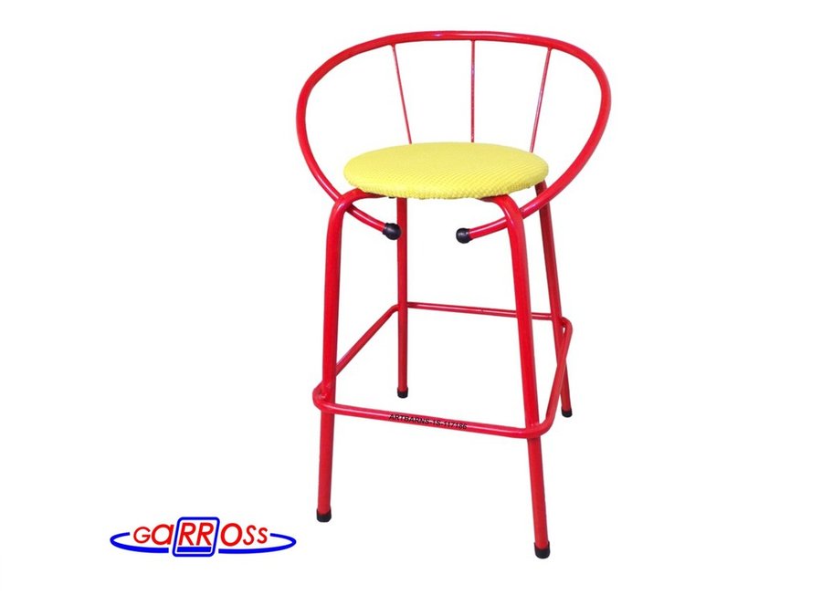 "ARTBARNS 1S-117186" cтул барный, табурет,спинка, высота 0,61м, 22мм,красные ножки/жёлтый верх ткань