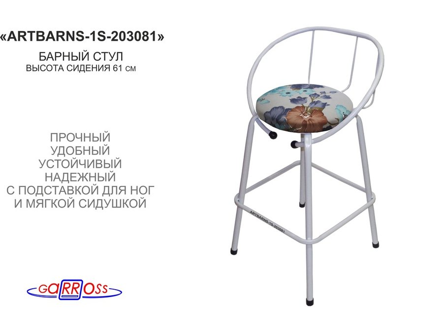 Барный стул "ARTBARNS-1S" органично дополнит интерьер модного заведения или домашней кухни. Стильная модель высотой 0,61 метра устойчиво стоит на четырех опорах с удобными подножками.