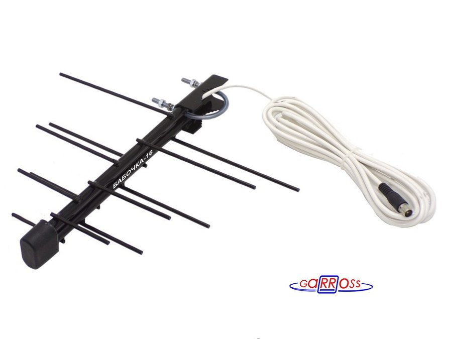 • "БАБОЧКА-16" ЧЁРНАЯ уличная телевизионная антенна предназначена для приема цифрового DVB-T2 и аналогового телевизионного сигнала ДМВ диапазона
