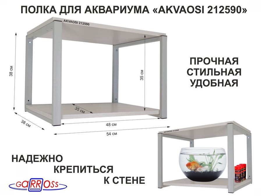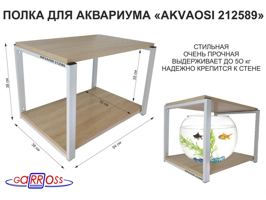 В корзину Купить в 1 клик Полка для аквариумов, высота 38см "AKVAOSI 212589" две полки 35х54см, серый/дуб сонома