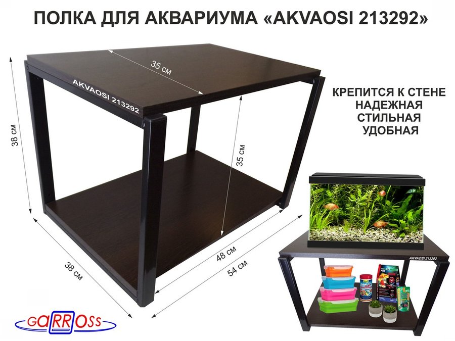 В корзину Купить в 1 клик Полки для аквариумов, высота 38см "AKVAOSI 213292" две полки 35х54см, чёрный/венге