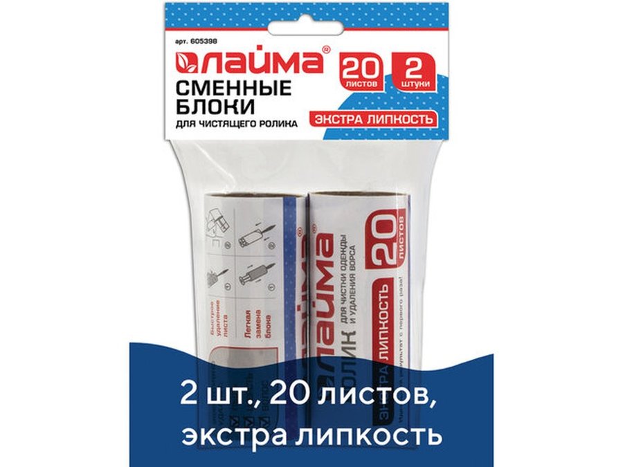 В корзину Купить в 1 клик Сменный блок для чистящего ролика, КОМПЛЕКТ 2 штуки, 20 листов, экстра липкость "BR-83113"