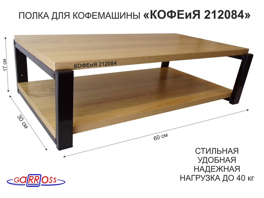 Полка для кофемашины, черная "КОФЕиЯ 212084" высота 17 см, полки 30х60 см, дуб сонома, 2 уровня