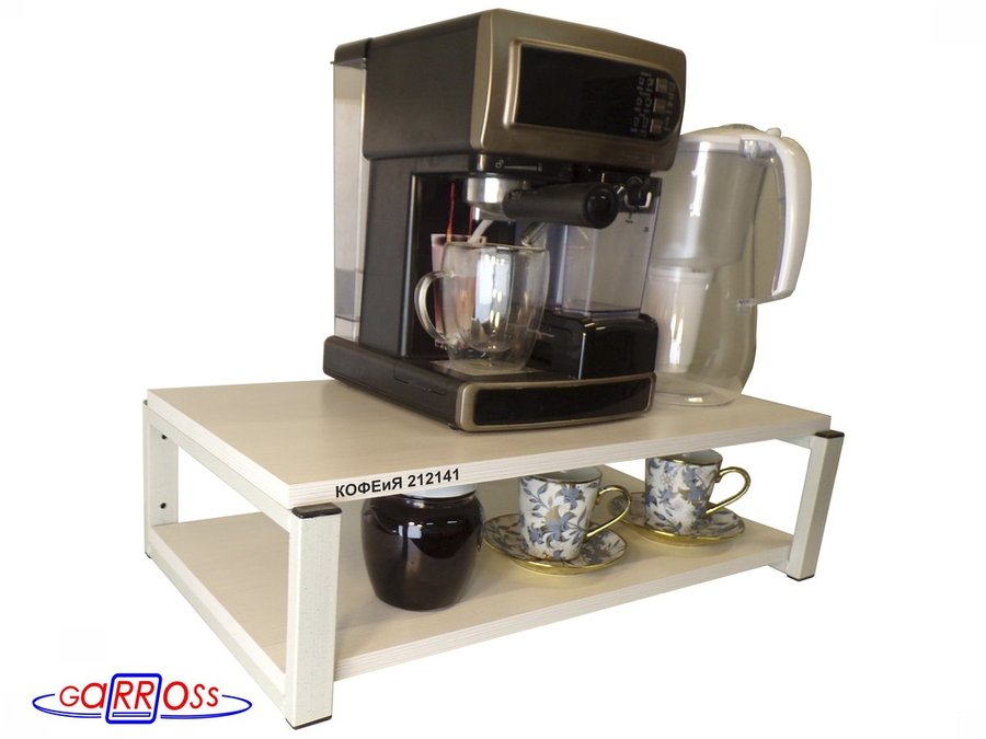 Полка для кофемашины, серая "КОФЕиЯ 212141" высота 17 см, полки 30х60 см, сосна выбеленная,2 ур.