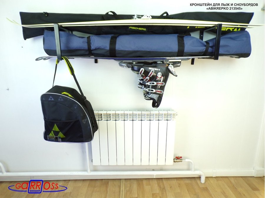 Кронштейны для лыж и сноубордов к стене, потолку, чёрный "ABIKREPKO 213545" 33х25см, 2шт в комплекте