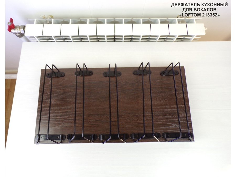 Держатель можно разместить под полкой или внутри шкафа (закрепив его на верхней стенке). Бокалы больше не будут пылиться, а хозяйкам не придется их перемывать. Держатель навесной для бокалов устанавливается легко - крепится к полке.