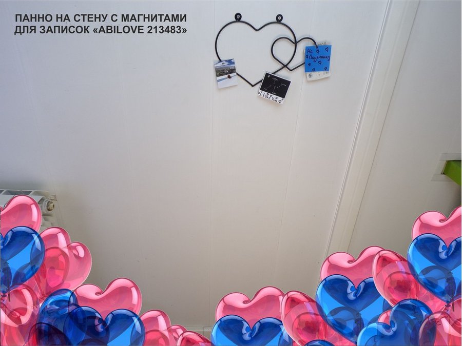 Панно на стену с 3 магнитами для записок и фотографий, два сердца, чёрный "ABILOVE 213483"
