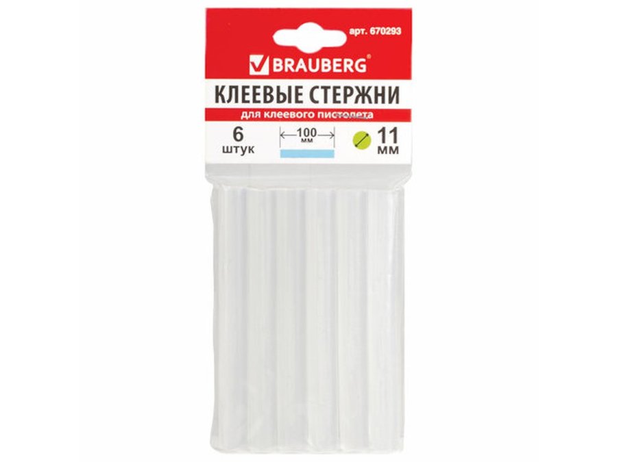 В корзину Купить в 1 клик Клеевые стержни, диаметр 11,0мм, длина 100мм, прозрачные, КОМПЛЕКТ 6 шт. "BR-79850",европодвес