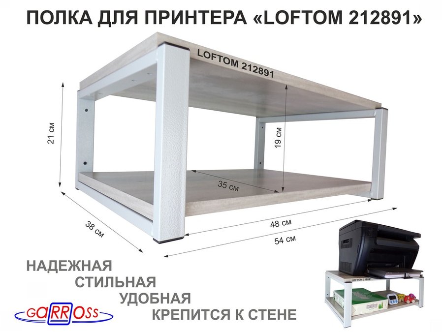Полки под принтер или МФУ "LOFTOM" высота 21см, с полками 54х35см