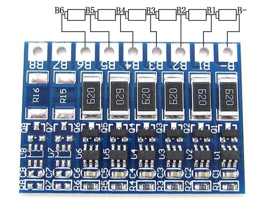 В корзину Купить в 1 клик Плата балансировки для Li-ion батарей до 6-ячеек