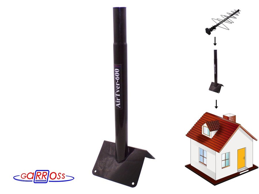 В корзину Купить в 1 клик Кронштейн антенный на конёк крыши, диаметр 51мм "AirTver-600-126086" черный высота 60см обжата 120мм