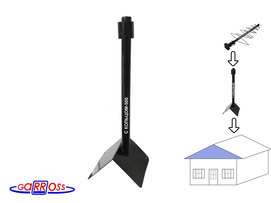 В корзину Купить в 1 клик Кронштейн антенный на конёк крыши "С КОЛЬЦОМ-500GR-17223" серый, высота 50см, труба 32мм,кольцо 50мм