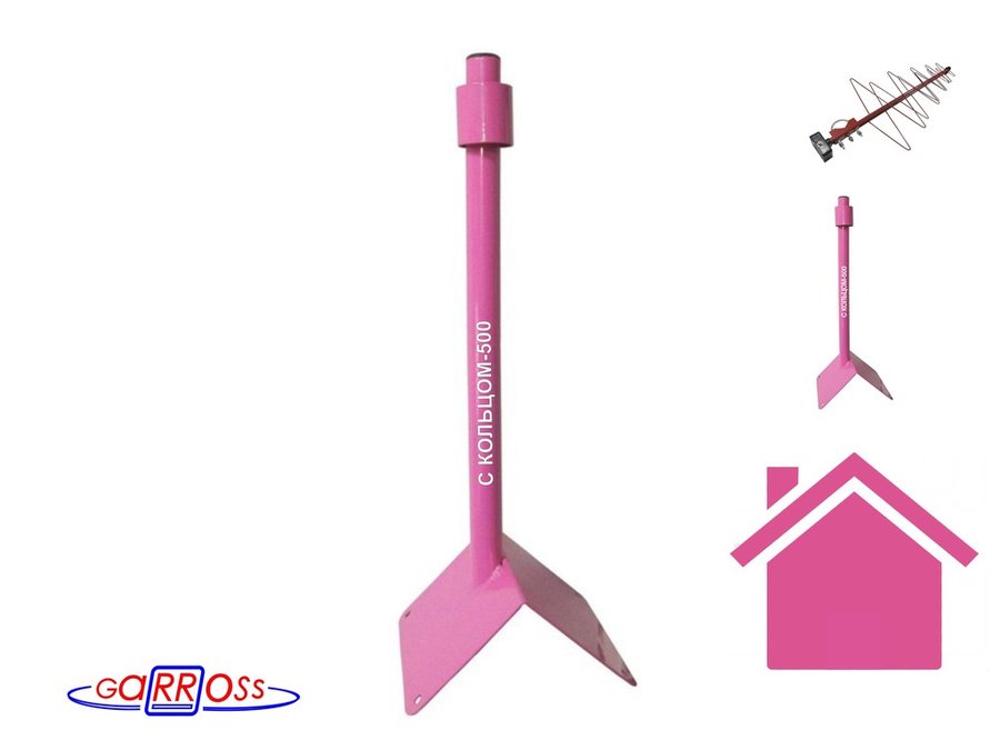 В корзину Купить в 1 клик Кронштейн антенный на конёк крыши "С КОЛЬЦОМ-500PN-20100" розовый,высота 50см,труба 32мм,кольцо 50мм