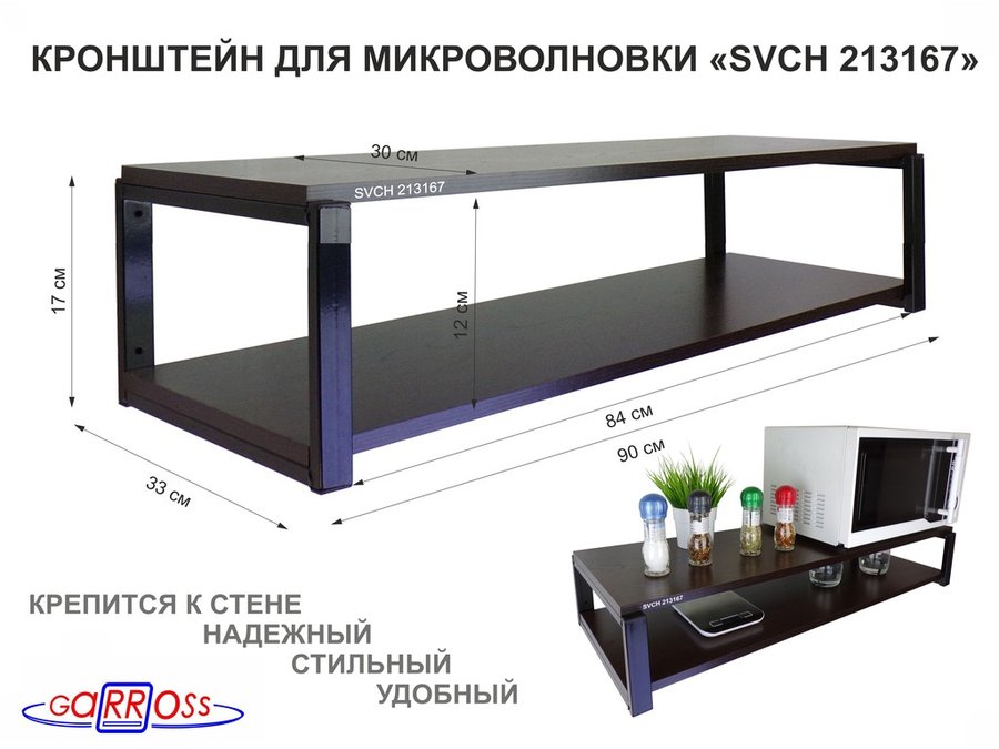 В корзину Купить в 1 клик Кронштейн для микроволновки, 17см чёрный "SVCH 213167" под микроволновку,две полки 90х30, венге