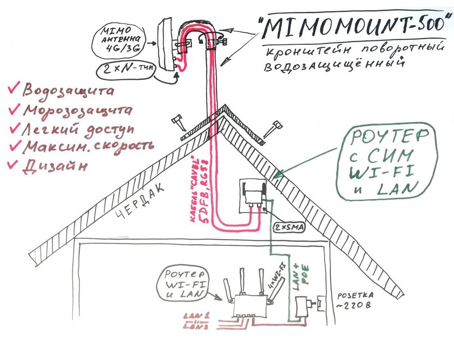 - Появляется возможно красиво установить антенну для мобильного интернета, добиться высоких скоростей и длительного срока службы.