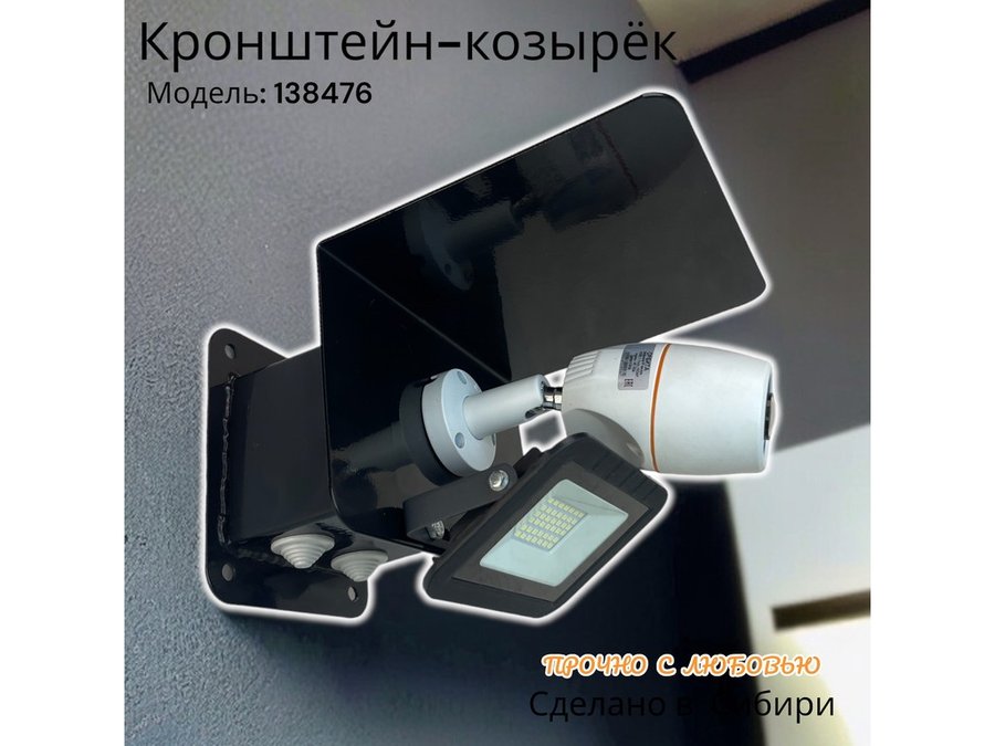 Кронштейн для камеры и прожектора с боксом "HIWOLL-5500BL-138476" черный с козырьком, к стене