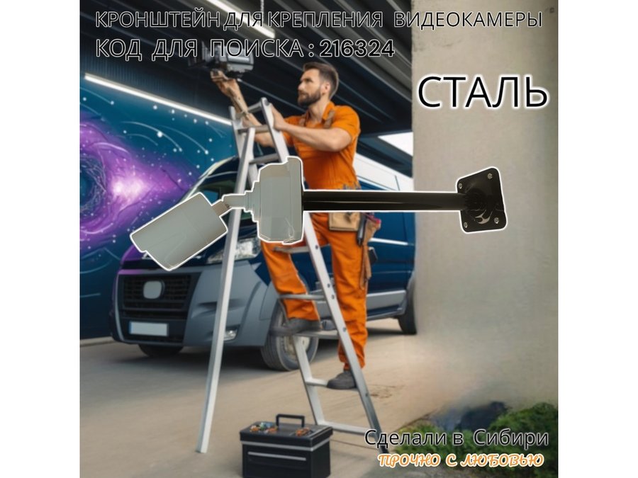 Кронштейн для крепления гермобокса с видеокамерой, вылет 35 см "ADELA-4-216324" цвет черный, сталь