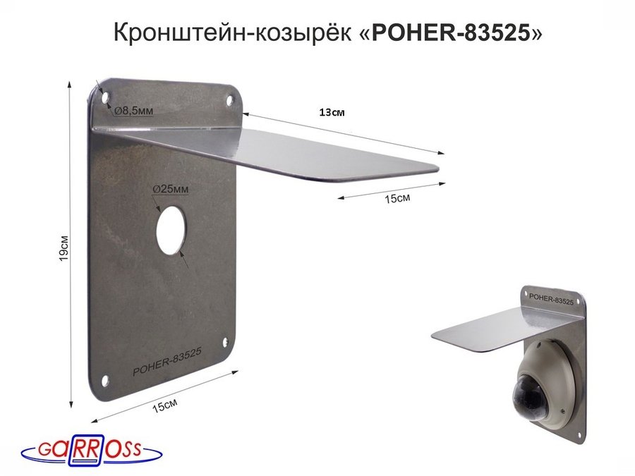 В корзину Купить в 1 клик Кронштейн-козырёк для защиты камеры от дождя "POHER-83525" (VNI09-20S) сталь 2мм, серебристый