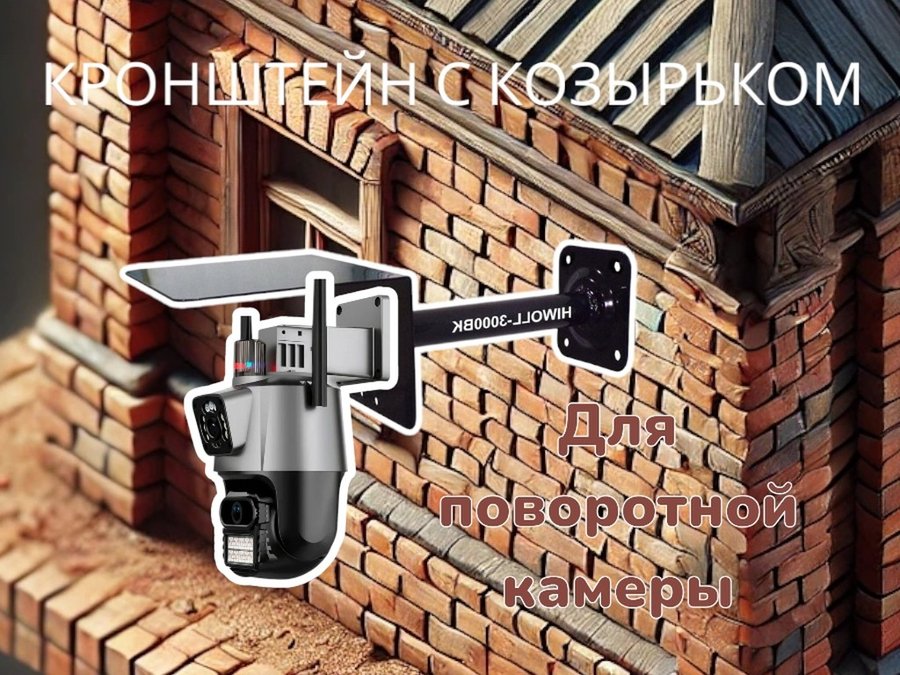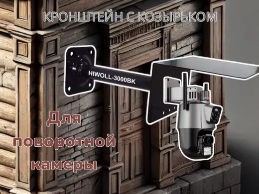 Кронштейн для поворотной камеры с вылетом 25см и козырьком для защиты "HIWOLL-216162" черный, сталь