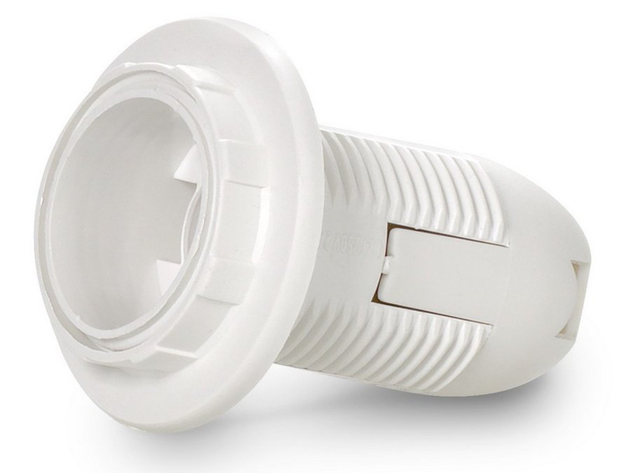 В корзину Купить в 1 клик Патрон Е14 пластиковый с кольцом БЕЗ стикера, термостойкий пластик, белый (SBE-LHP-sr-E14-ns)