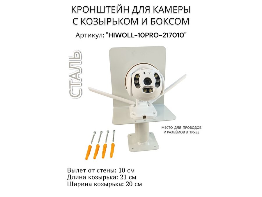 В корзину Купить в 1 клик Кронштейн с боксом и козырьком для видеокамеры "HIWOLL-10PRO-217010" серый, вылет 10см, сталь