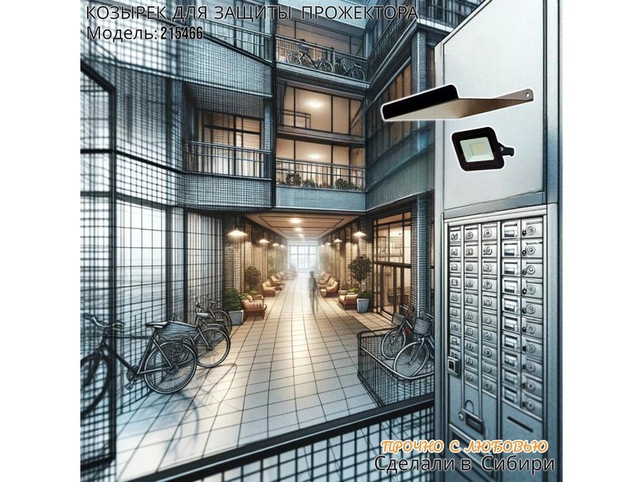 Козырёк для защиты прожектора от дождя с желобком "POHER-215466" черный 24 х 24 см сталь 2 мм