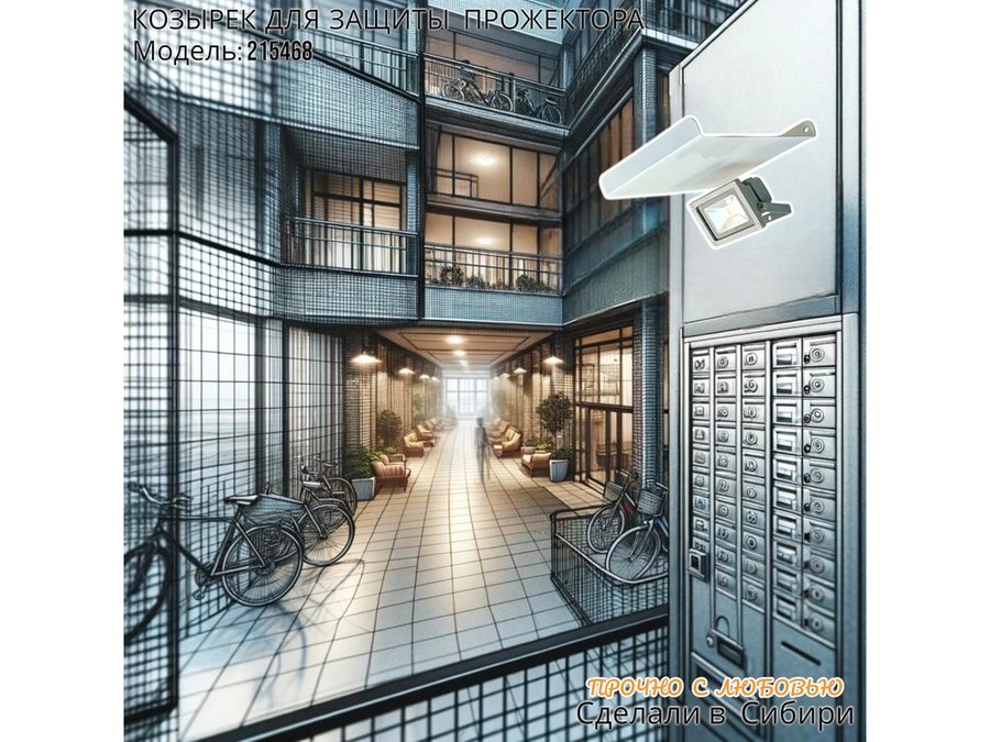 Козырёк для защиты прожектора от дождя с желобком "POHER-215468" белый 24 х 24 см сталь 2 мм