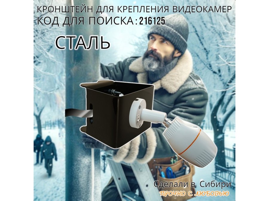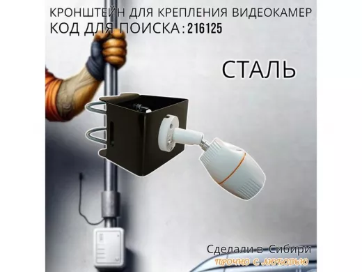 - Универсальный усиленный кронштейн предназначен для крепления видеокамеры на трубе диаметром от 15 до 51мм или на столбе.