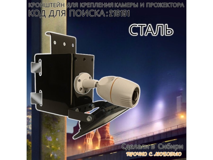 - Универсальный усиленный кронштейн предназначен для крепления прожектора или камеры на трубе диаметром от 15 до 51мм или на столбе.