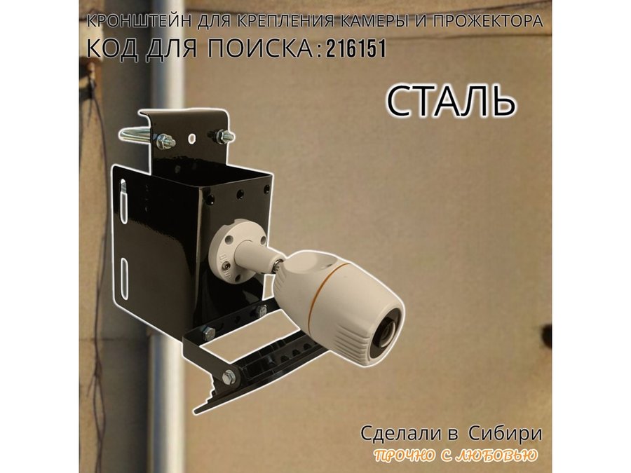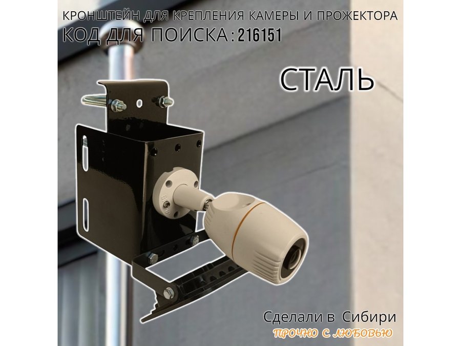 Кронштейн универсальный на трубу или столб для камеры или прожектора "ПРОЖЕКРЕП-216151" сталь,черный