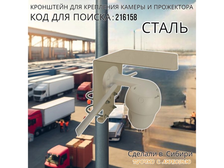 - Универсальный кронштейн с козырьком предназначен для крепления камеры наблюдения на трубе диаметром от 15 до 51мм.