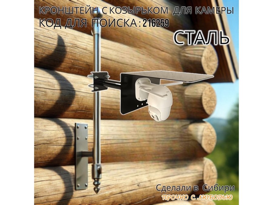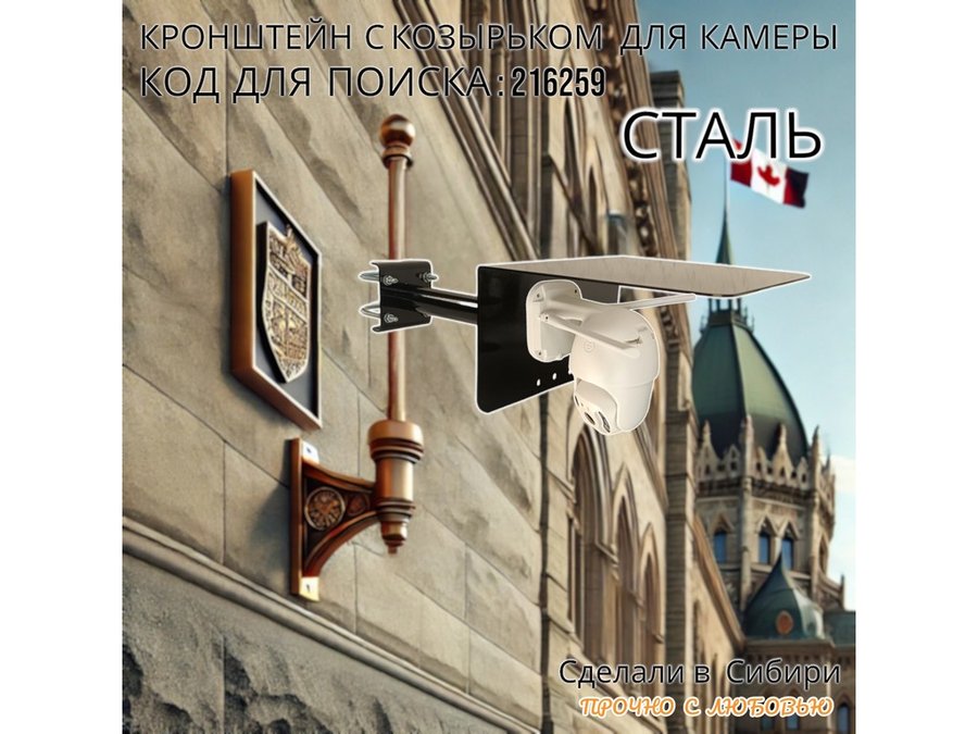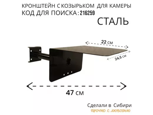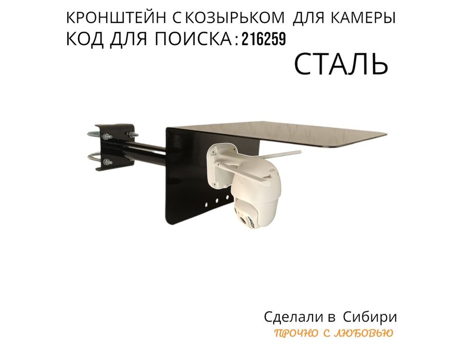Кронштейн с козырьком для видеокамеры на трубу 15...51мм вылет 25см "HIWOLL-216259" чёрный