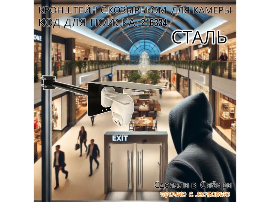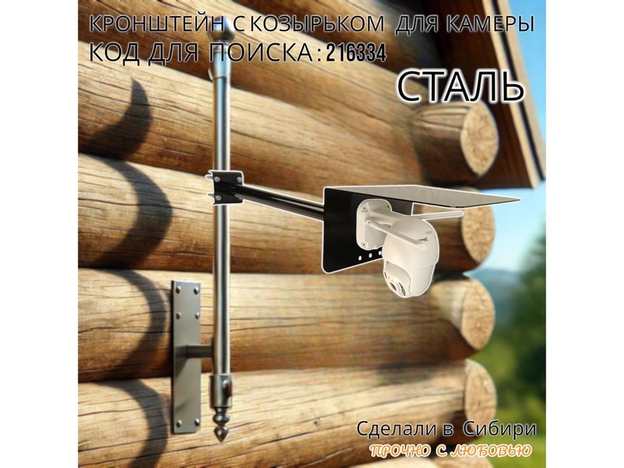 Кронштейн с козырьком для видеокамеры на трубу 15...51мм вылет 50см 24х22см "HIWOLL-216334" чёрный