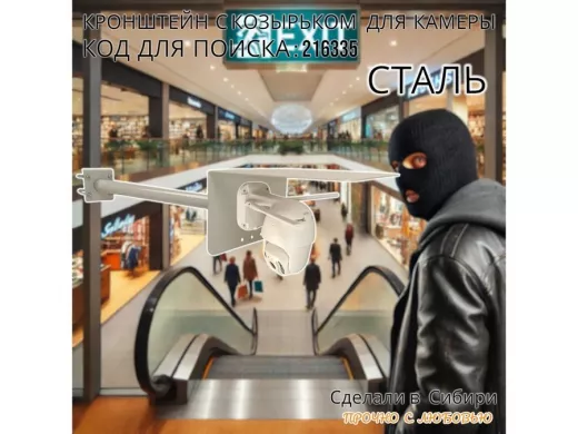 Кронштейн с козырьком для видеокамеры на трубу 15...51мм вылет 50см 24х22см "HIWOLL-216335" серый