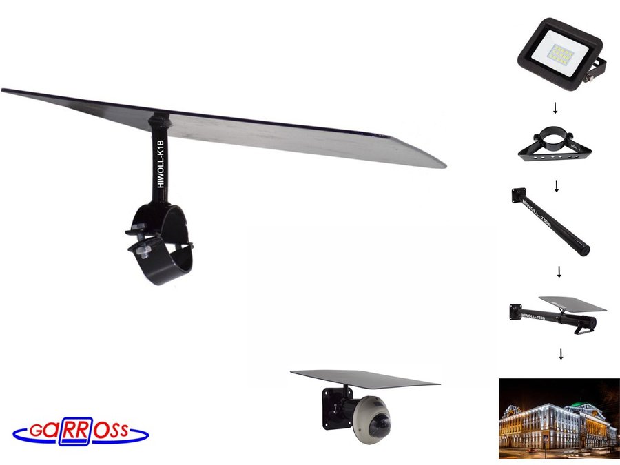 Кронштейн-козырёк от дождя "HIWOLL-83528" 27х27см, с хомутом 51мм для защиты камеры,сталь 2мм,чёрный