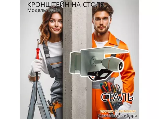 - С данным кронштейном нет необходимости в фиксации дополнительного крепежа под установку камеры, все крепежные отверстия имеются на кронштейне.