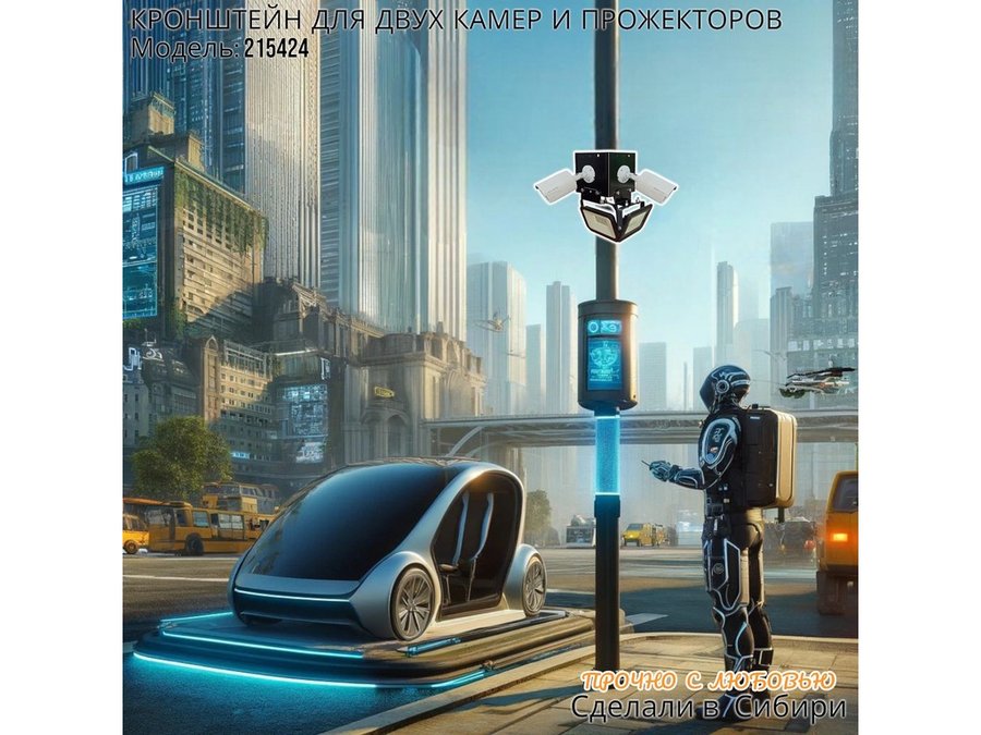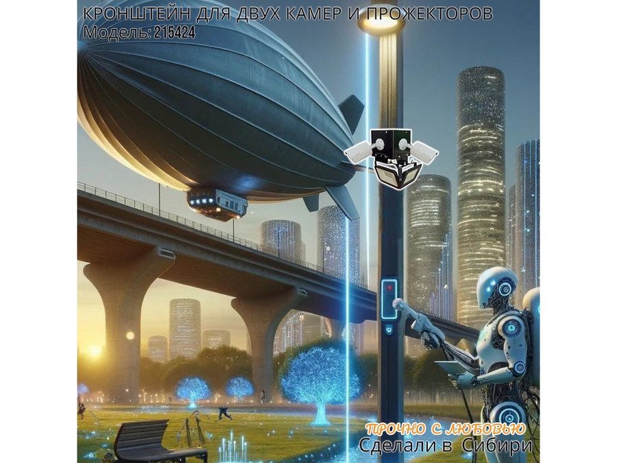- Кронштейн для двух камер и прожектора, крепится при помощи СИП ленты монтажной на квадратный или круглый столб.