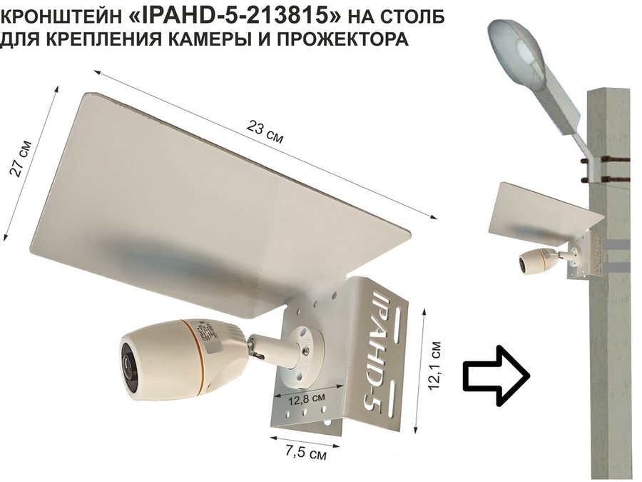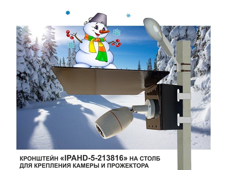 В корзину Купить в 1 клик Кронштейн для камеры и прожектора на столб с козырьком "IPAHD-5-213816" черный, под СИП-ленту