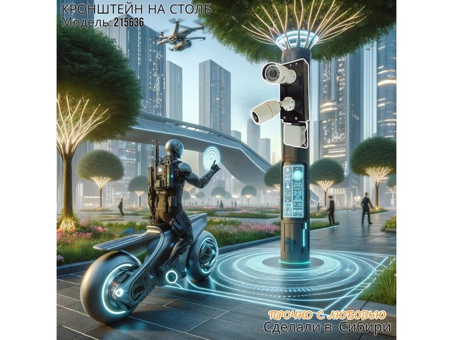 Кронштейн для двух камер и прожектора на столб с пластиной для гермокоробки черный IPAHD-5-215636