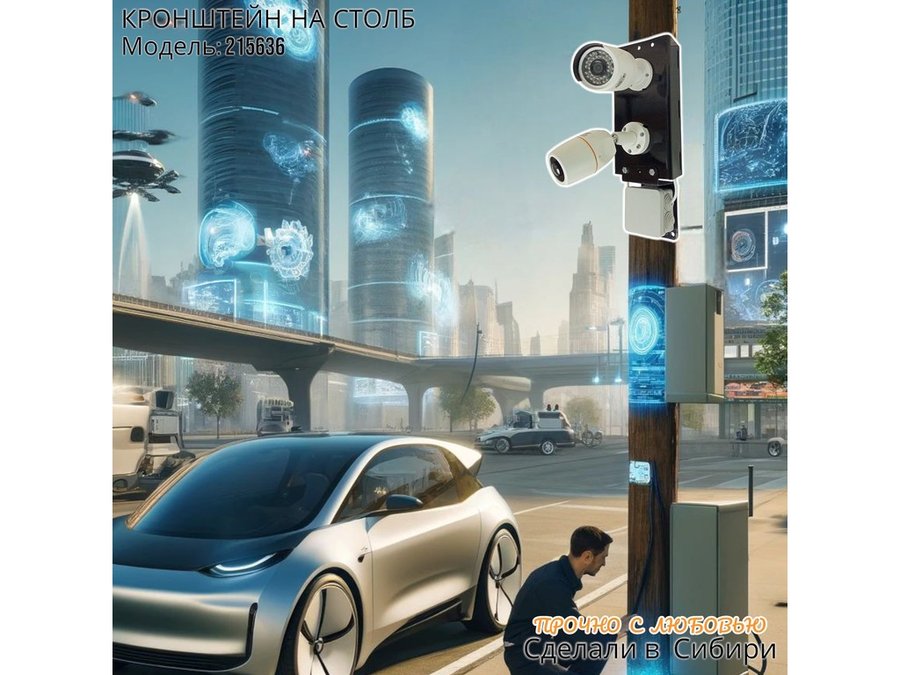 Кронштейн с пластиной для монтажной коробки для крепления двух камер и прожектора на столб при помощи СИП - ленты или хомутов