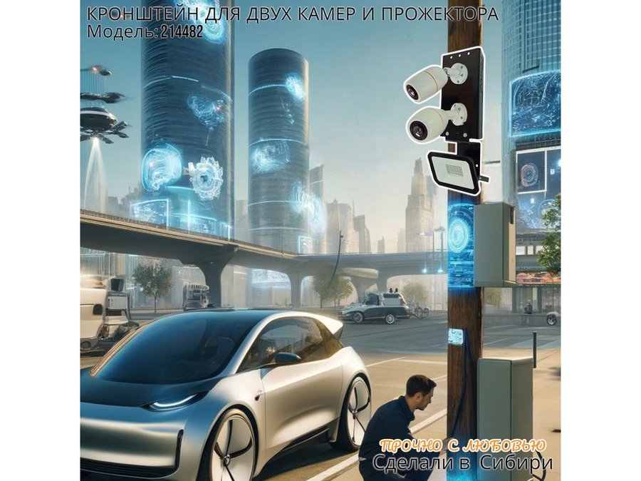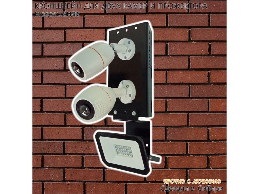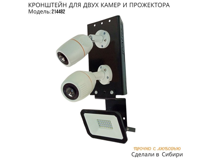 Кронштейн для двух камер на столб с пластиной под прожектор "IPAHD-5-214482" прочная сталь, черный