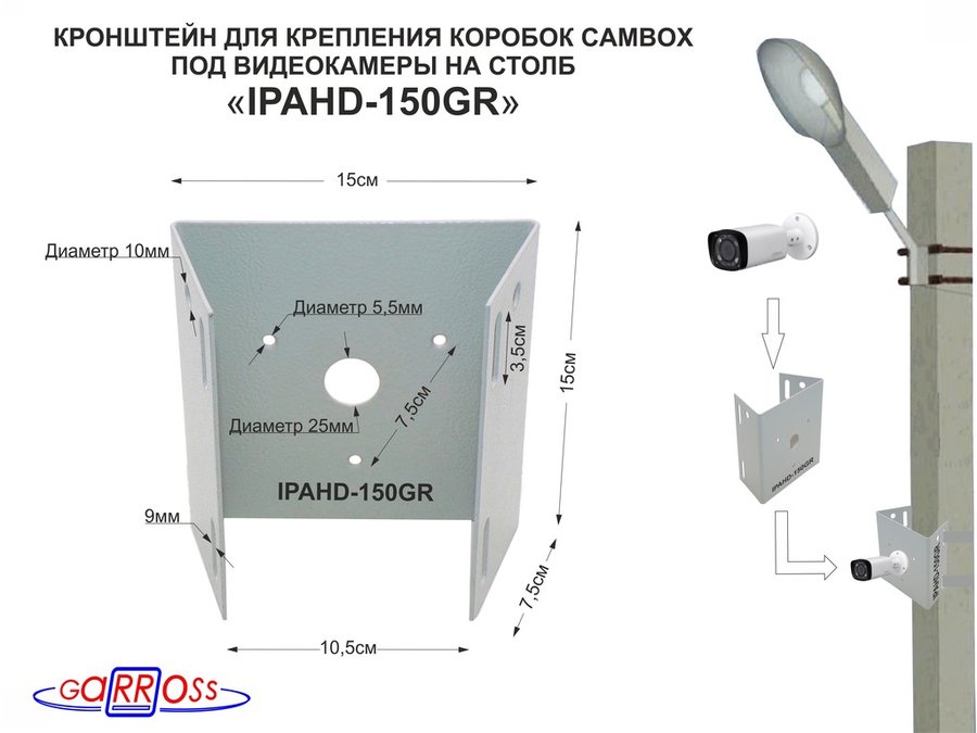 В корзину Купить в 1 клик Кронштейн на столб для крепления гермо-коробок CAMBOX и видеокамер "IPAHD-150GR-129486" серый