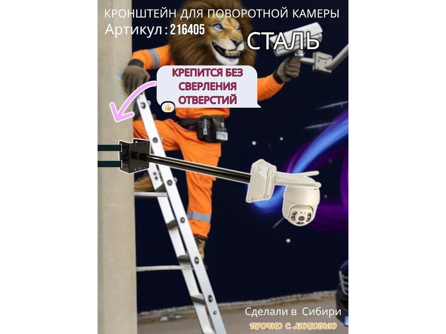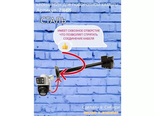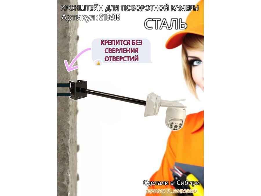 - Стальной кронштейн позволяет вынести камеру от столба на 50 см.