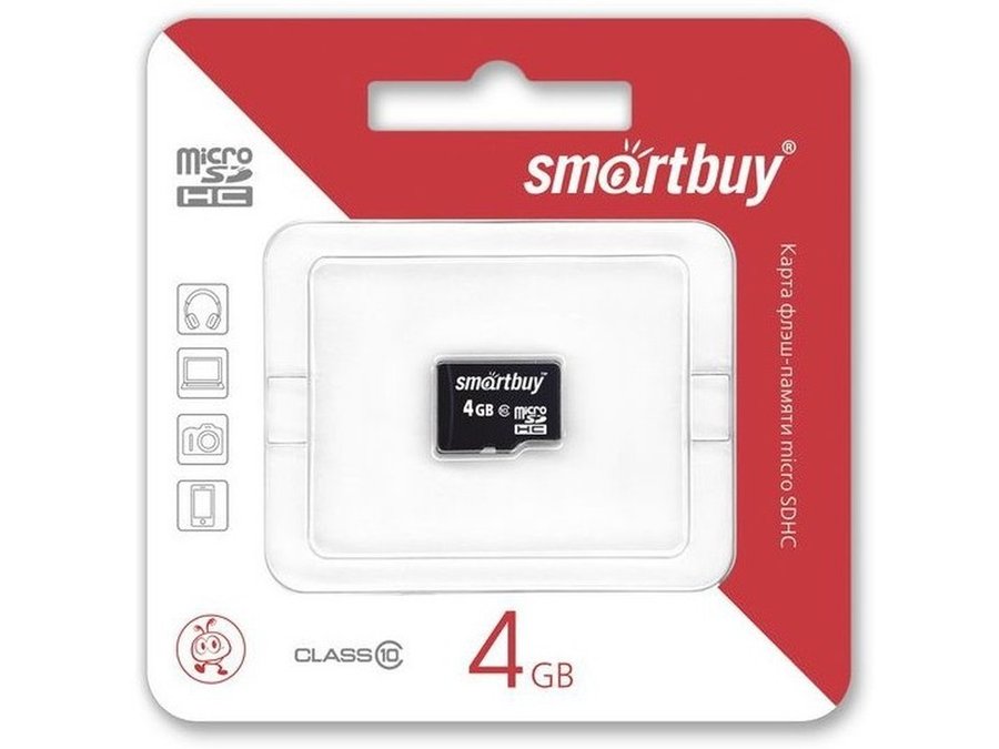 В корзину Купить в 1 клик Карта памяти micro SDHC 4GB Smartbuy class 10, без адаптера